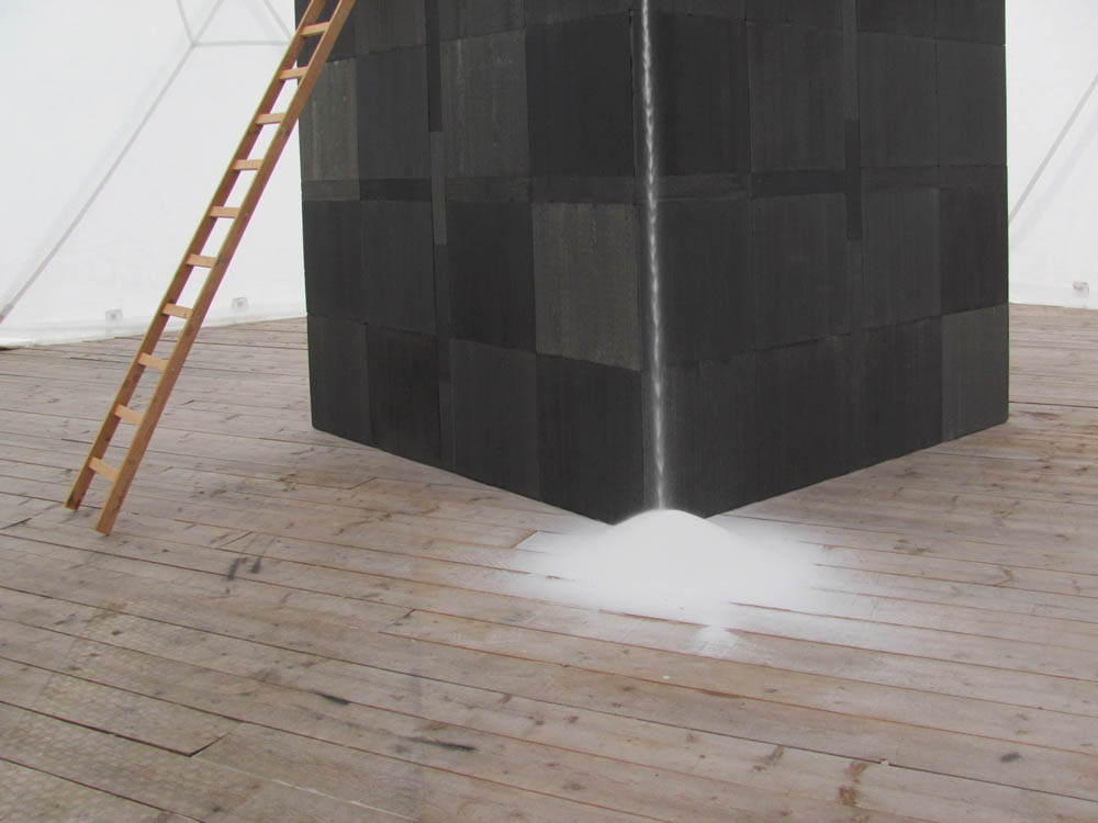 Erik Vinkenoog’s fascinatie voor alchemie en scheikundige processen, met name binnen de schilderkunst speelt zich hoofdzakelijk af binnen het handzame. In MIR bouwt Erik echter een grote installatie met zout als basismateriaal. Met hulp van de lokale Boer weet Erik het handzame te overstijgen en een theatrale setting te creëren.