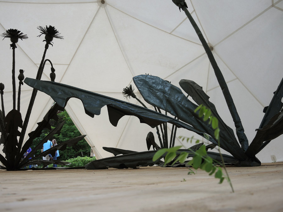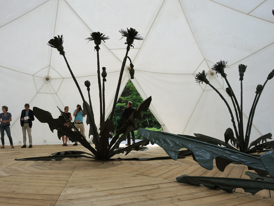 Linda Nieuwstad (Middelharnis,1974) maakt grote monumentale bloemstukken. Vaak naar het voorbeeld van 17e eeuwse bloemstillevens schilders (als Jan van Huysum en Rachel Ruysch) waarbij symbolische verwijzingen als vanitas, ijdelheid of vergankelijkheid, maar ook de kundigheid in lichtinval en de compositie centraal staan. Deze idylle wordt door Linda Nieuwstad met o.a. vrachtwagenzeil, schuimrubber en ander bouwmateriaal brutaal opgeblazen tot overdonderende formaten. Gecombineerd met haar studies naar- en haar kennis over de plantenvormen wordt de toeschouwer zich bewust van de wonderlijke gedaantes en betekenissen van planten. In MIR zette Linda het bermplantje Taraxacum Officinale centraal. Een bekende langs de snelweg, tussen de stoeptegels en het onkruid in de tuin.