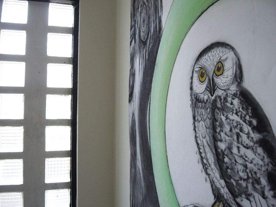 Het lekkende en leegstaande slaapverblijf KKN24 was lichter dan ooit. Het onverlichte pand absorbeert rond deze zonnewende zoveel mogelijk licht. Toch blijft het er donker en duister. Tijdens de 2 rondleidingen was (semi)permanente werk van alle TRANSMUTE24 kunstenaars te zien.