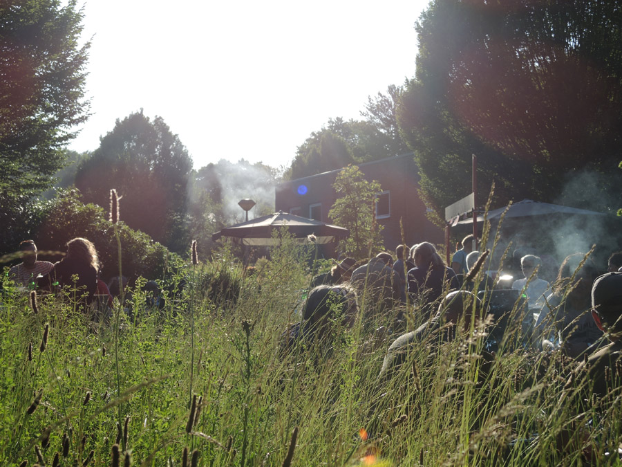 Nazit: diverse salades, groene soep en Flammkuchen in het gras tussen de Guestroom en Transmute24. In juli is CODE ROOD even met vakantie, eind augustus zijn we er weer!
