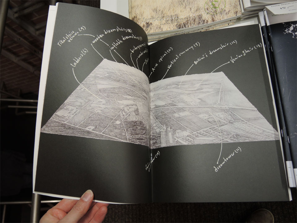 Bij de GUESTROOM prijkte een tafel met daarop publicaties van kunstenaars die tijdens CODE ROOD geëxposeerd hebben of anderszins betrokken zijn. Alle publicaties zijn te koop. Cahier Stichting Verborgen Landschap: Verkenner Robbie Cornelissen.