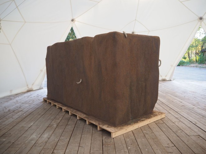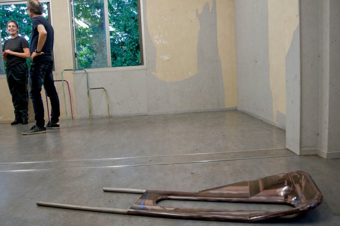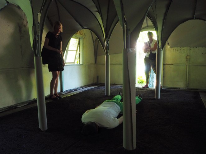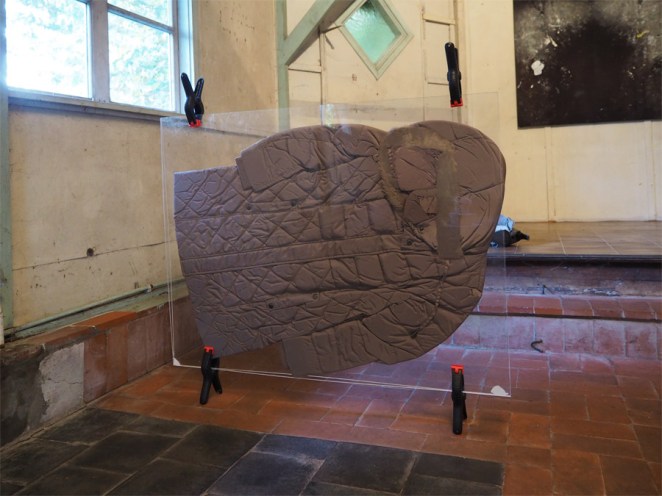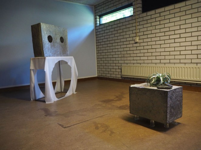 Kunstenaars Terry van Gurp en René Oudenhoven. Moving, moving architecture, moving sculpture. Architectuur / sculptuur die beweegt. Beweegt in de zin van ‘niet stil staat’ maar ook in de zin van ‘ontroert’. You saw me crying in the chapel: vrij associërend op capella, manteltje, de knielende Elvis die zijn cape uitspreidt en vlinder, ‘kapel’ in het oud Nederlands. www.vgto.nl