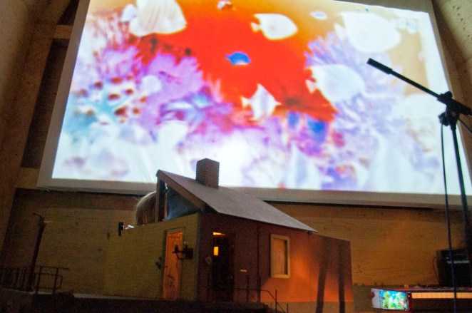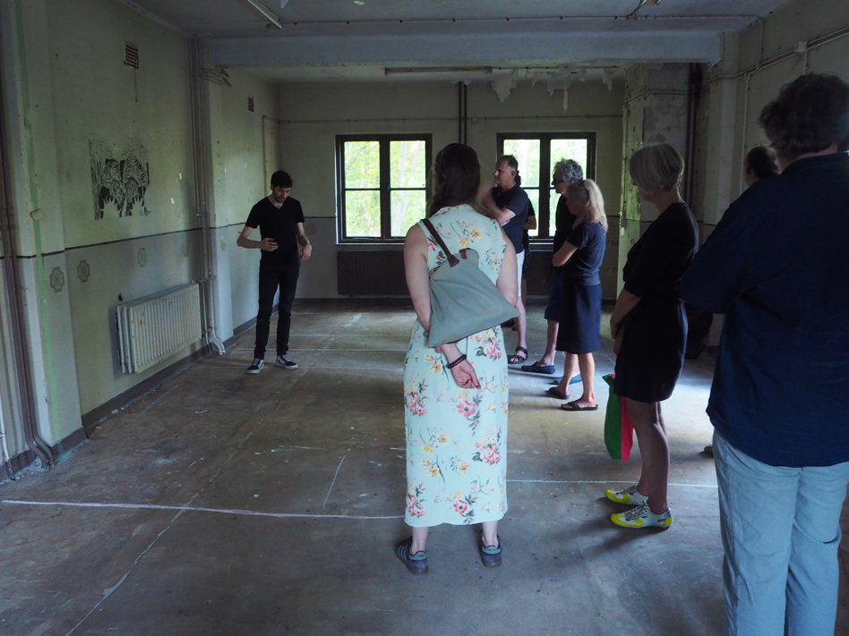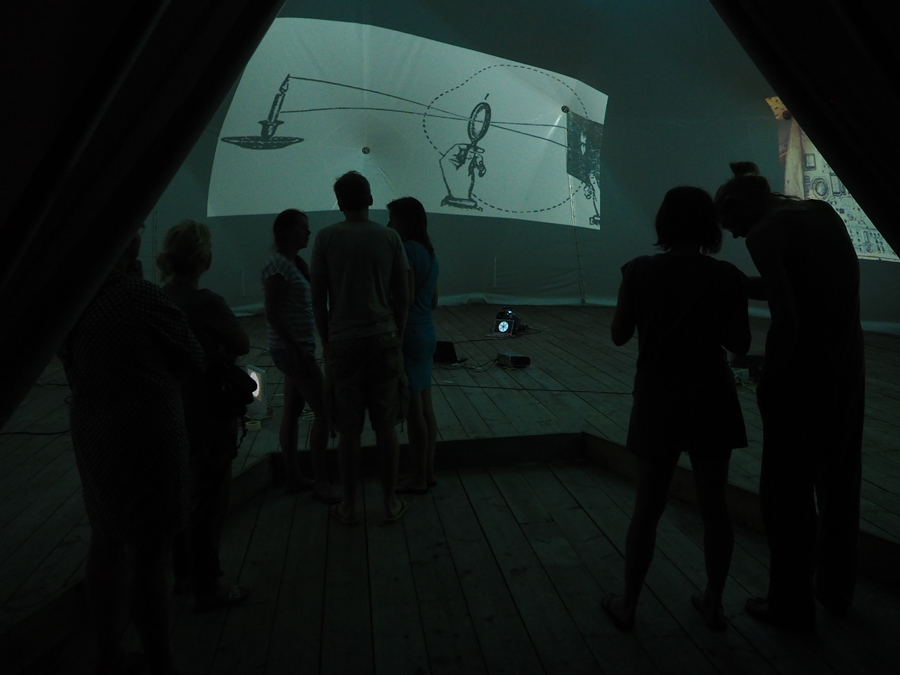 Publiek werd uitgenodigd om een cinematografische wandeling te maken over het terrein waarbij je in diverse gebouwen werken van kunstenaars tegenkwam. In de grote nieuwe filmzaal werd het geheel van de filmscènes getoond.