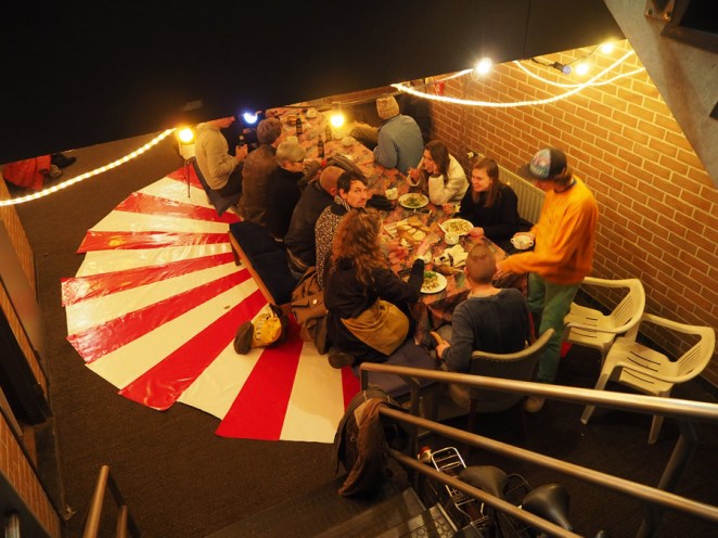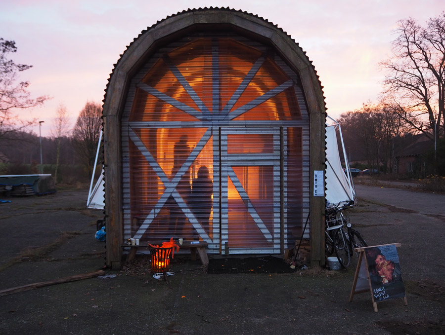 Op zaterdag werd rond zonsondergang de performance Wrijving uitgevoerd door Frans van Lent. Een performance op de grens van binnen en buiten, van dag en nacht. www.fransvanlent.nl