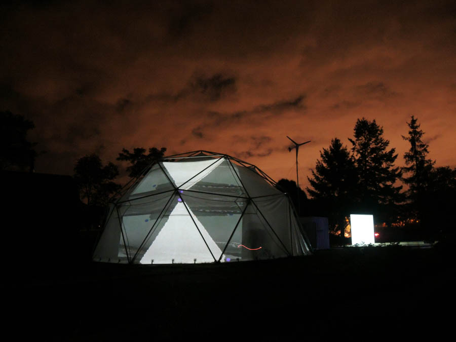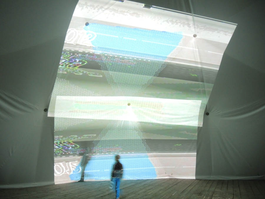 Als afsluiter heeft Jeroen Glas vanaf zonsondergang binnen en buiten de MIR videoprojecties getoond uit de serie MIMIC. Het projectievlak is meteen het onderwerp. Met een jaren ’90 videotool heeft Jeroen deze animaties gemaakt, waarbij de constructie van de MIR het uitgangspunt is geweest.